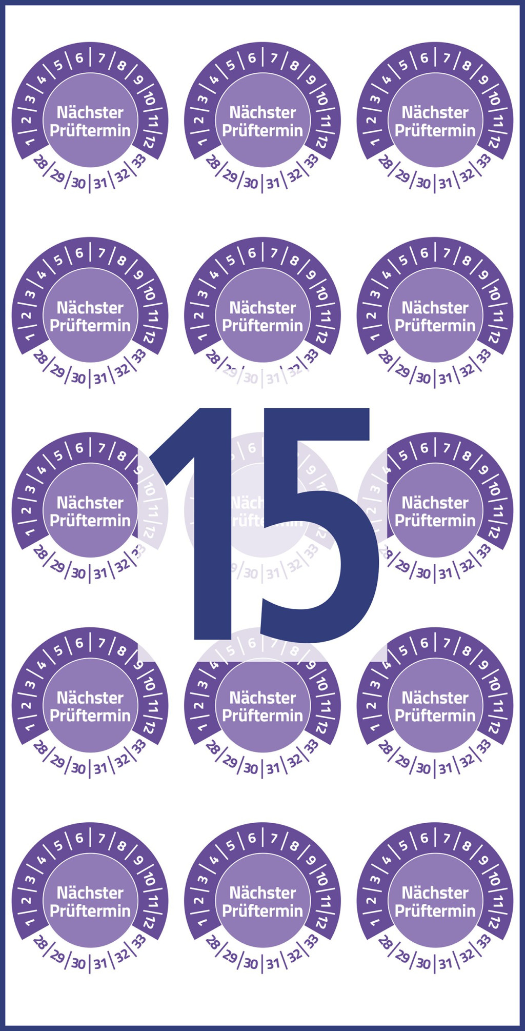 Avery Zweckform No. 6989-2028 ibolyakék színű, 20 mm átmérőjű, öntapadós biztonsági hitelesítő címke, 2028-2033-as évszámmal, Nächster Prüftermin felirattal - kiszerelés: 120 címke / csomag