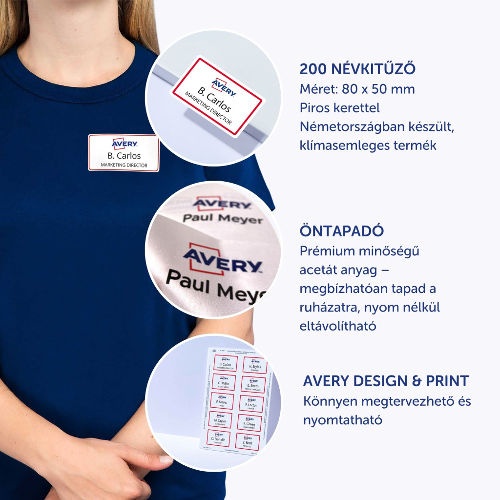 - Avery névkitűzők és textilcímkék